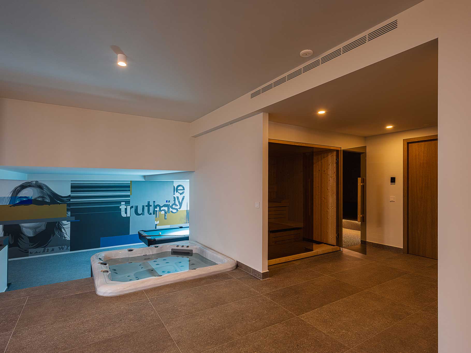 Unwind in the warm serenity of your indoor spa, complete with a hammam, calming sauna, heated Jacuzzis, and a tranquil massage room.